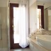 Pareti bianche, rifiniture in pietra o ceramica, arredi nei toni del grigio, sabbia e le gamme del blu e turchese rendono l’insieme armonioso e rilassante.