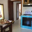 La casa Vacanze è su due livelli: al piano terra una camera da letto (letto 160x190) con bagno privato, la zona living ripartita in 3 aree dove ci sono due divani davanti ai due camini, la cucina che comunica con la zona pranzo con una finestrina, praticissima per passare a tavola direttamente i piatti.