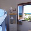 Al piano superiore 2 camere (camera con letto 160x190) + camera con 2 letti a castello (4 letti 80x190), ciascuna con il proprio bagno privato, tutto superpanoramico, con vista mare e sulla Torre di Chia!