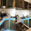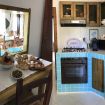 La cucina realizzata in muratura e legno è decorata con le mattonelle tipiche della Cerasarda nei colori del turchese...!