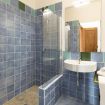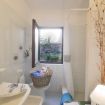 Sempre al piano terra anche il bagno con la grande doccia in pietra è tutto nei toni del turchese e azzurro!